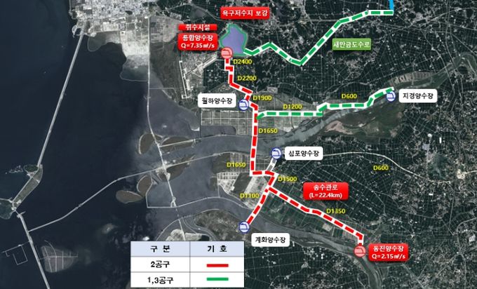 이 사업은 새만금 농생명용지에 안정적이고 지속적인 농업용수 공급을 위해 통합양수장 1개소 신설과 옥구저수지 보수‧보강, 송수관로 24.9km 등을 설치하는데 2,368억 원의 재정을 투입하는 사업이다.
