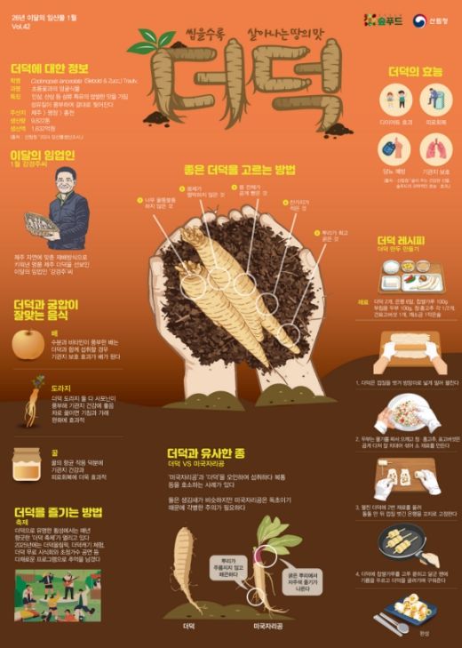 이상익 산림청 산림산업정책국장은 “더덕은 향과 영양을 모두 갖춘 겨울철 대표 임산물”이라며, “앞으로도 국민들이 일상 속에서 임산물을 친숙하게 접할 수 있도록 홍보와 판로 확대를 지속적으로 추진해 나가겠다.” 고 밝혔다.