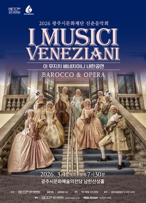 미디어라이프 중부신문 이종인 기자 | (재)광주시문화재단은 2026년 신춘음악회로 이탈리아 베네치아니를 기반으로 활동해온 바로크앙상블 〈이 무지치 베네치아니(I Musici Veneziani) 내한공연 – Barocco & Opera〉를 개최한다. 이번 공연은 베네치아 황금시대의 음악과 문화를 무대 위에 생생히 재현하며, 관객들에게 클래식을 통한 특별한 시간여행을 선사할 예정이다.