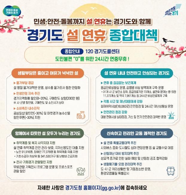 미디어라이프 중부신문 이종인 기자 | 경기도가 도민들이 따뜻하고 편안한 명절을 보낼 수 있도록 ‘설 연휴 종합대책’을 추진한다.