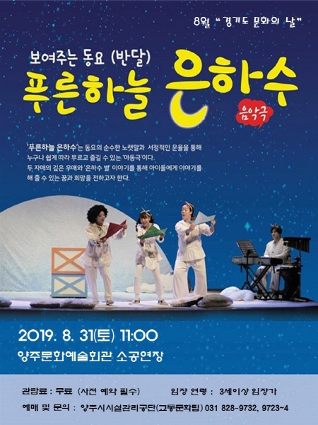 ‘푸른하늘 은하수’는 양주문화예술회관 상주단체인 극단 즐거운 사람들의 대표작품으로 2016년, 2019년에 한국문화예술위원회 신나는 예술여행 및 2018년 월간 한국연극 등 우수 작품에 선정됐다.