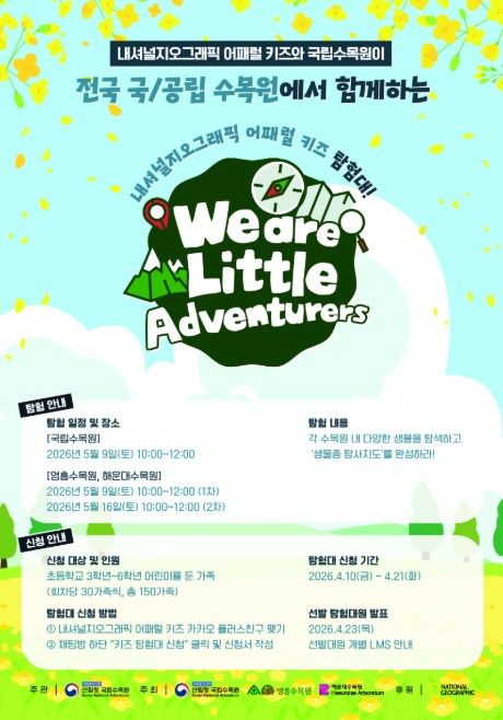 참여 신청은 ‘내셔널지오그래픽 어패럴 키즈’ 카카오 플러스 친구를 추가한 후 채팅방 하단의 ‘키즈탐험대 신청’ 메뉴에서 가능하다. 신청 기간은 4월 10일부터 4월 21일까지이며, 선발된 최종 참가자는 4월 23일 개별 문자(LMS)로 안내할 예정이다.