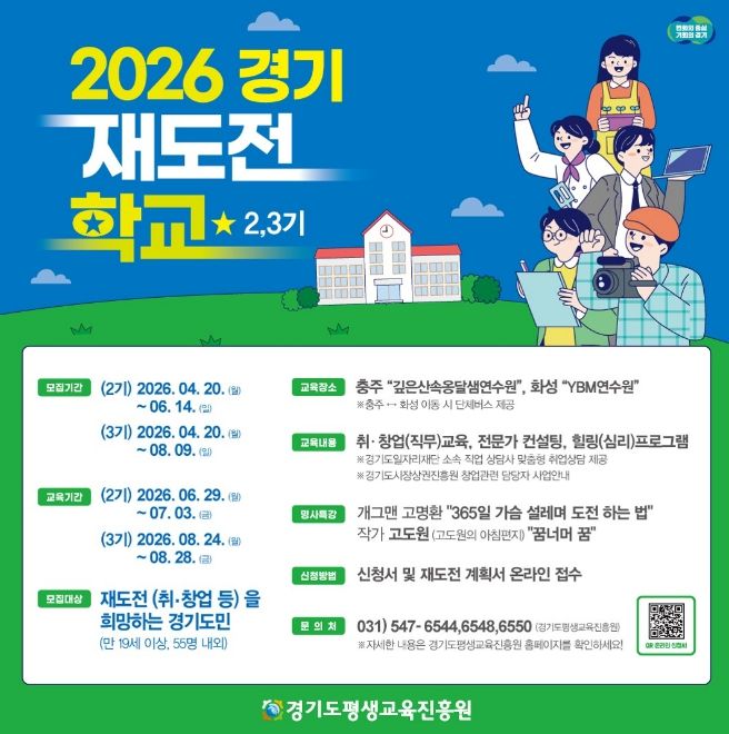 미디어라이프 중부신문 이종인 기자 | 경기도와 경기도평생교육진흥원은 취업이나 창업 실패를 경험한 도민의 재기를 지원하기 위해 오는 20일부터 ‘2026년 경기 재도전학교’ 2~3기 참가자를 각각 55명 내외로 모집한다.