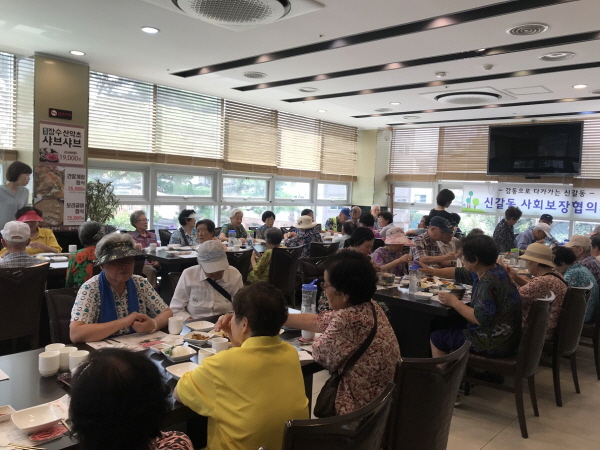 기흥구 신갈동은 지역사회보장협의체 위원들이 관내 한 식당에서 저소득 어르신 50명을 초대해 삼계탕과 과일을 대접하는 복달임 행사를 열었다.