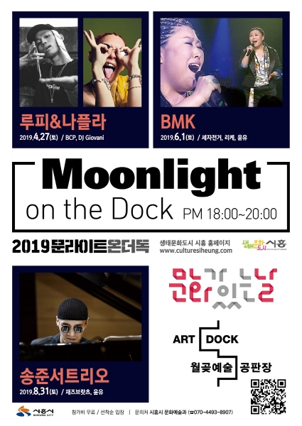 월곶예술공판장의 기획공연 ‘Moonlight on the Dock’은 지역 청년문화를 활성화하고 시민들에게 보다 다양한 문화예술 향유 기회를 제공하고자 2017년부터 매년 개최하고 있다. 올해는 문화체육관광부 문화가 있는 날 사업과 연계해 4월 힙합공연과 6월 소울공연을 성황리에 마쳤으며, 이어 8월 31일에는 재즈장르를 주제로 한 공연을 진행 할 예정이다.