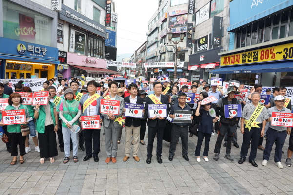 이는 지난 8. 8일 11시 중앙통 문화의 거리 광장에서 반도체 핵심부품·소재 생산공단 유치를 위한 결의대회 후 아베정권 규탄 및 일본제품 불매를 위한 두 번째 행사이다.
