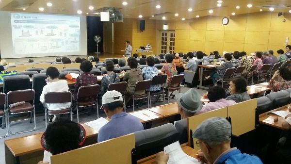 이날 노인복지관을 이용하는 어르신과 시설종사원 등은 일상에서 수시로 필요로 하는 교통안전이나 전기안전, 소화기 사용법 등을 큰 관심을 갖고 청취했다.