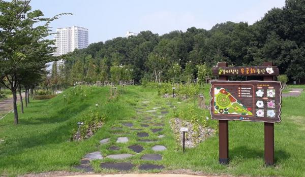 무궁화동산에는 나라꽃 무궁화 26품종 총 1,800여 주가 식재됐으며, 다양한 위치에서 무궁화 꽃을 감상할 수 있는 관찰로가 조성돼 나라꽃에 대한 시민들의 관심을 고취시키고 인접 유아숲체험원과 연계한 산림교육 학습의 장으로 활용하고 있다.