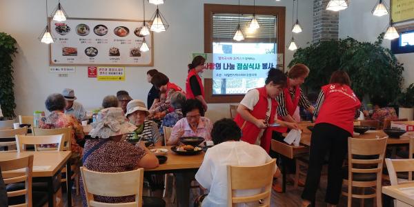 점심식사는 대표메뉴인 잔치국수와 돈까스로 정성껏 준비되었으며, 참석한 어르신들은 한여름에 떨어진 식욕을 살려줘 너무 맛있게 먹었다”며 “이런 자리를 마련해 주셔서 고맙다”고 전했다.