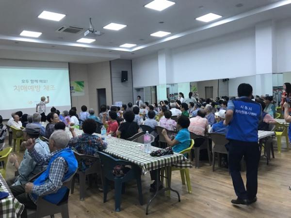또한, 치매안심센터에서 마련한 치매예방 체조시간에는 어르신은 물론이고 협의체 위원들도 덩달아 신이 나 함께 즐기는 모습이 무척이나 흥겨워보였다. 이날 행사 끝에는 신현동자원봉사센터에서 직접 만든 단호박죽과 대한적십자 신현봉사회에서 준비한 부채, 시흥시1%복지재단에서 지원받은 삼계탕까지 나눠드려 두 손 가득 선물까지 안고 돌아가셨다.