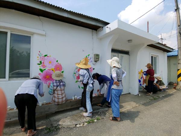 이에 주민자치위원회에서는 마을회관 주변 노후화된 건물과 외벽에 벽화로 마을을 좀 더 산뜻하게 가꾸고 주민들이 담소장소가 되는 역할을 제공하고자 마을회관 벽화를 주민들의 의견을 받아 원적산의 천덕봉을 중심으로 산 아랫마을의 옛 정서를 표현하였으며, 마을회관은 포토존을 만들어 기념사진을 찍을 수 있도록 아크릴화반 학습자들의 재능기부를 통해 함께 디자인했다.
