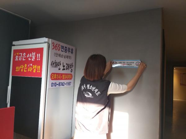 이날 청소년지도위원들은 관내 유흥업소, 노래방 등을 방문해 청소년 출입 제한시간을 준수해 줄 것을 당부하며 청소년에게 술과 담배의 판매를 금지한다는 스티커를 직접 업소에 부착하는 등 적극적인 활동을 전개했다.