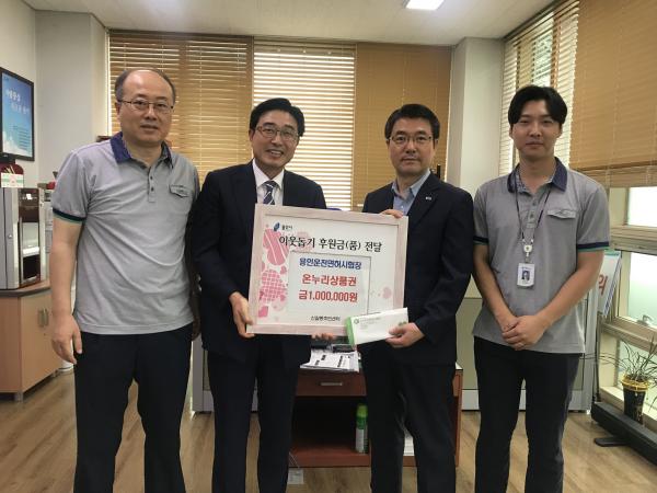 [미디어라이프(medialife)] 용인시 기흥구 신갈동은 21일 도로교통공단과 용인운전면허시험장에서 온누리상품권 100매를 기탁했다고 밝혔다.
