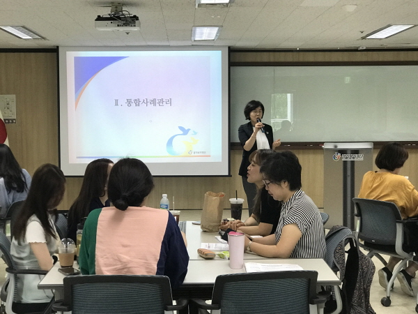 교육은 강점관점 사례관리 초기상담의 이해 사례관리 과정별 핵심과업의 이해 사례관리 과정별 기록 등 업무 이해도와 전문성을 높일 수 있는 내용으로 진행됐다.