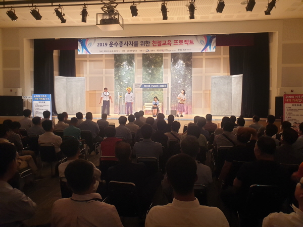 이번 교육은 무정차, 불친절, 난폭운전 등 시민들로부터 가장 많이 민원이 제기되는 유형에 대해 1회당 1시간 30분 친절연극공연으로 진행되고 있으며, 김포연극협회 배우들이 참여해 운수종사자들이 시내버스를 운행하면서 쉽게 경험할 수 있는 3대 민원별 사례들을 연극으로 보여줌으로써 참여자들로부터 많은 공감을 얻고 있다.