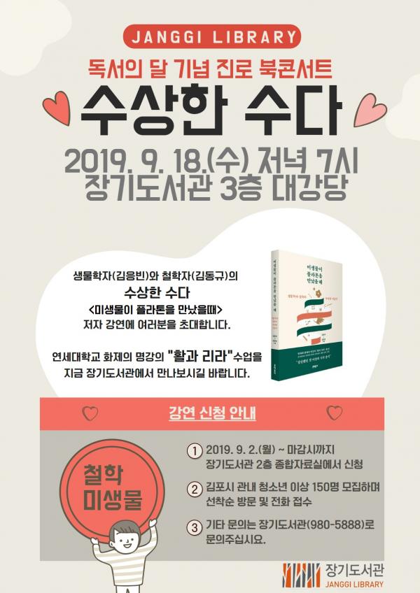 이번 장기도서관 청소년 진로 북 콘서트에서는 ‘미토콘드리아:공생의 아이콘’이라는 주제로 김포시민들과 소통할 예정이다.
