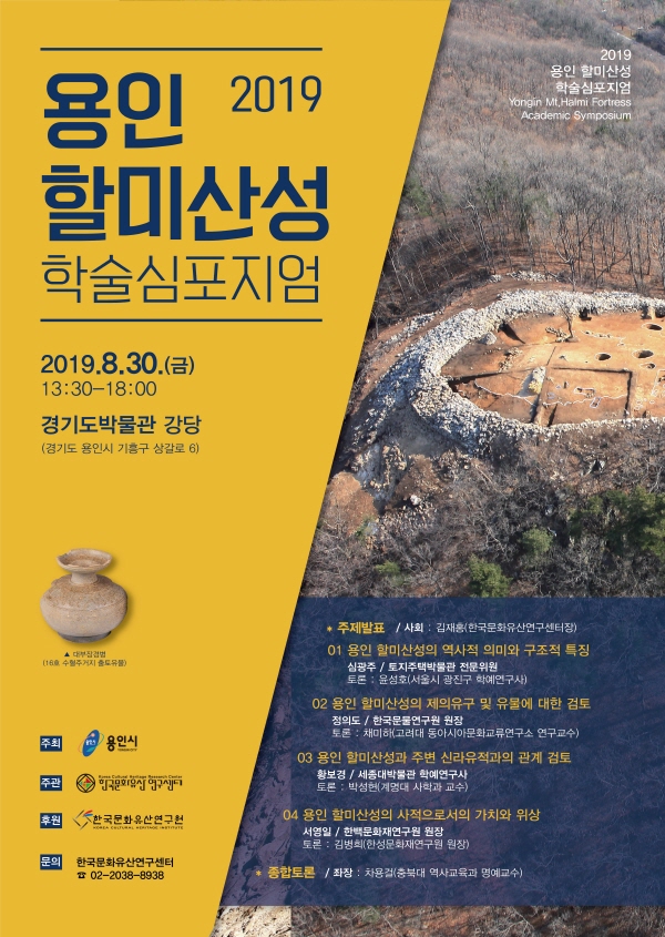 또 황보경 세종대박물관 학예연구사가 ‘용인 할미산성과 주변 신라유적과의 관계 검토’를, 서영일 한백문화재연구원장이 ‘용인 할미산성의 사적으로서의 가치와 위상’을 발표한다.