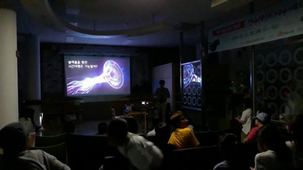 달빛 영화제는 연세대에서 은하 진화 및 근우주론을 연구 중인 지웅배 작가는 참석자들과 함께 영화‘인터스텔라’를 함께 관람하고, 요즘 이슈가 되고 있는 블랙홀의 이미지 관측 및 영화 속 장면 구현에 관해 설명했다. 지 작가는 질의응답시간엔 참석자들의 전문적인 지식에 놀라워하며, 우주에 관심이 있는 분들이 많아서 즐거운 강의였다고 말했다.