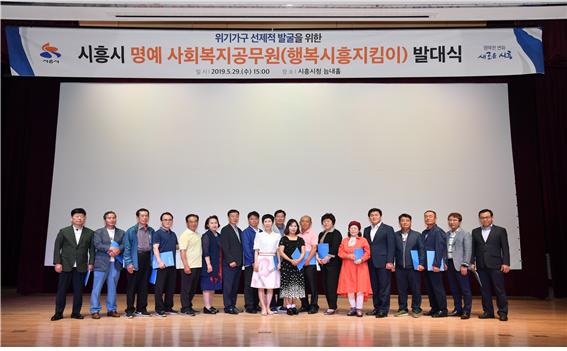 시흥시는 ‘행복시흥지킴이’라 일컬어지는 명예 사회복지공무원들이 각 동마다 구성되어 지역의 복지사례를 발굴하고 위기 가정에 대해 세심히 살피고 있다. 명예 사회복지공무원이란 무보수?명예직으로 활동하며 빈곤 위기가구, 돌봄 위기가구, 주거 취약가구 등 새로운 사회적 위험에 선제적?효율적으로 대응하기 위해 위기가구 모니터링, 발굴 및 지원하는 역할을 수행하는 인적자원망을 말한다. 시흥시는 약 18개 동주민센터에서 1,500여 명이 위촉되어 활동 중이다. 이들은 복지사각지대에 있는 가정을 직접 찾아가 어려운 이웃을 발굴하여 도움의 손길을 내밀고 있다.