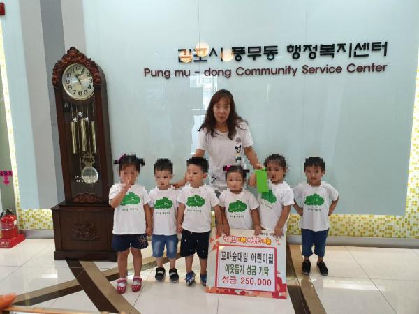 유정호 풍무동장은 “어린이집 아이들과 선생님들의 진심어린 기부에 감사드리며, 성금과 더불어 어려운 이웃을 향한 어린이들의 사랑도 함께 전달하겠다”며 인사말을 전했다.