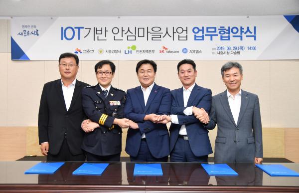 시흥시는 29일 오후 2시 시청 다슬방에서 시흥경찰서, LH한국토지주택공사, SK텔레콤, ADT캡스와 안심마을사업 추진을 위한 업무협약을 체결했다. 최근 사회적 약자를 대상으로 한 각종 사고 및 범죄 발생률이 증가함에 따라 시민이 체감할 수 있는 안전 보호대책 마련이 시급하다는 요구가 높아지고 있다. 이에 시흥시는 임대주택을 대상으로 사물인터넷 기반 안심마을사업을 시범 추진하고자 한다.