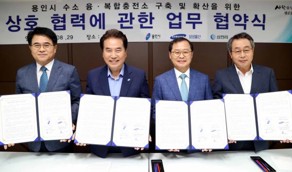 협약식엔 백군기 용인시장을 비롯해 정금용 삼성물산 대표, 안민호 ㈜삼천리 부사장, 유종수 수소에너지네트워크 대표가 참석했다.