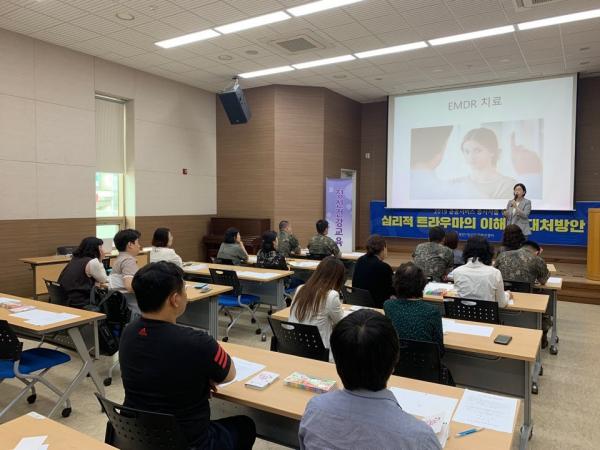 이날 교육에선 송숙형 정신건강전문의가 참가자들의 스트레스를 측정하고 심리적 트라우마의 대처법에 대해 상세하게 설명했다.
