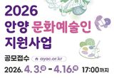안양문화예술재단, '2026년 안양 문화예술인 지원사업' 공모