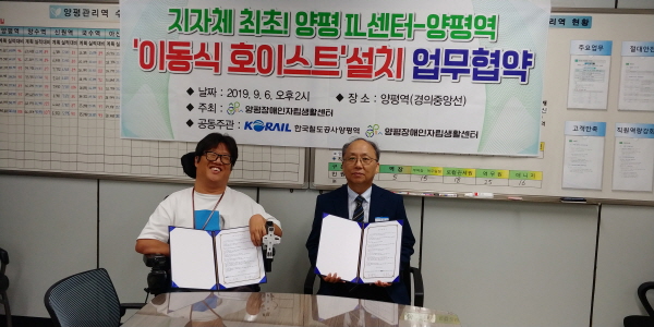 이날 협약에서는 양평IL센터가 지원 주체로 이동식 호이스트의 지원·유지·보수를, 양평역이 관리 주체로 비치·대여·안내를 맡기로 했다.