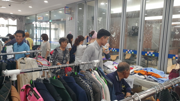 양평군내 릴레이로 진행되고 있는 이번 행사는 주민 300여명이 참석한 가운데 자원이 순환되는 친환경 사회를 만들기 위해 의류, 신발 등의 기증품과 농산물 등이 판매됐다.