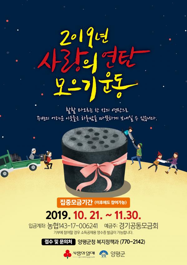 ‘사랑의 연탄 모으기 운동’은 동절기 연탄 및 난방비를 마련하지 못해 어려움을 겪고있는 관내 저소득층 주민의 따뜻한 겨울나기를 돕기 위해 2014년부터 매년 이웃돕기 성금을 마련하여 지원하는 운동이다.