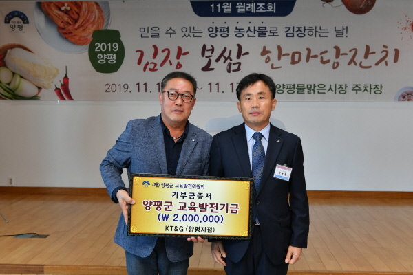 11월 월례조회에 참석한 기탁자들은 “우수한 학생들이 지역사회에 꼭 필요한 인재로 성장하길 바라는 마음으로 기금을 마련했다. 학생들이 언제 어디서나 고향 사랑의 마음을 잊지 않기를 바란다”며 뜻을 모았다.