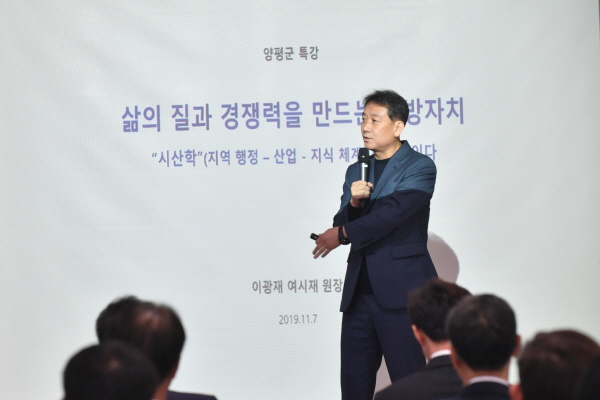 정동균 양평군수는 강연 후 “오늘의 특강으로 양평군의 발전방향을 함께 고민해보고 실천과제를 모색해 볼 수 있어서 뜻깊었다”며 창조적인 혁신도시를 만들기 위해 꾸준히 함께 노력할 것”을 당부했다.