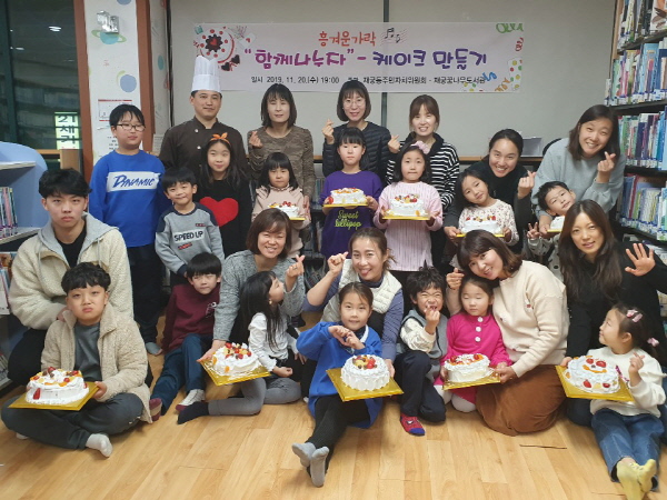 이날 행사에는 10가족이 참여해 가정마다 케이크 2개씩을 만들어 하나는 가져가고 하나는 나눔 실천에 사용했다.