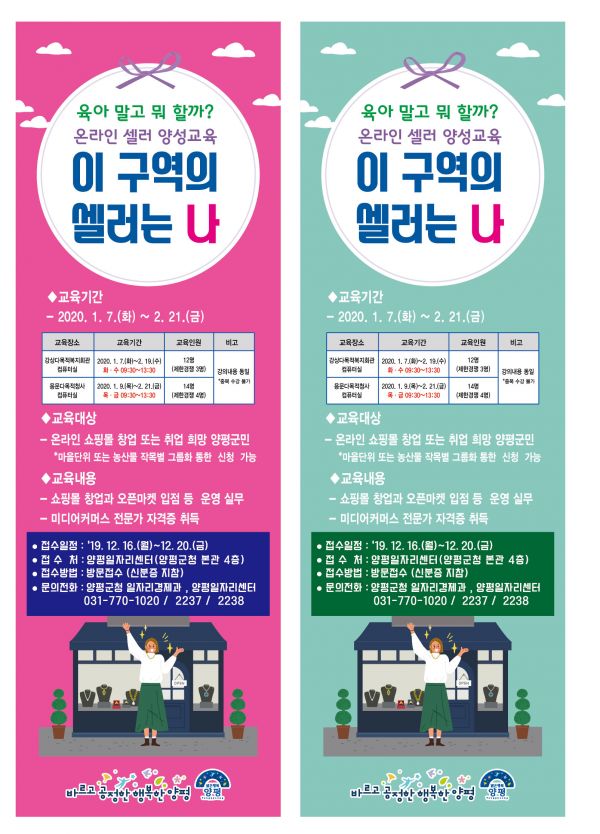 한편 양평군민 대상으로 진행되는 본 교육은 선착순 마감이 아니며 1차 서류전형, 2차 면접을 통해 참여자를 확정할 예정이다.