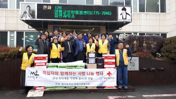서종적십자는 연간 취약계층 7가정을 발굴해서 김치와 반찬 등 부식 지원을 비롯해 매달 지역사회에 온정의 손길을 베풀고 있으며 연말을 맞아 더 많은 어려운 이웃에게도 따뜻한 마음을 전하고 싶어 쌀까지 지원하게 됐다.