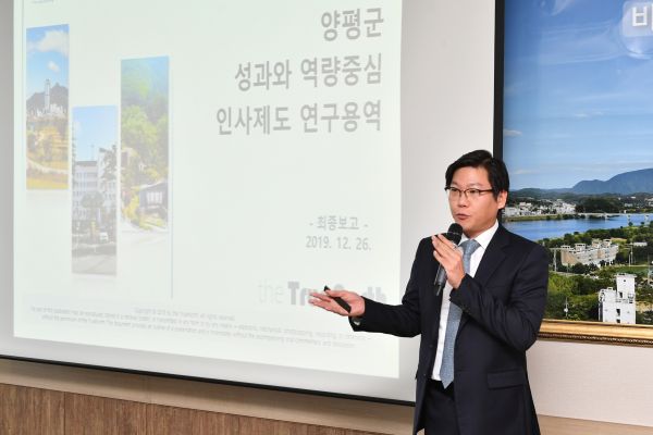 이번 연구용역은 민선7기 '청렴성과 성과, 역량 역량 중심의 인사시스템으로 개혁' 공약 추진의 일환으로 양평군의 인사운영 전반을 점검하고 장기적인 인사전략 마련을 위해 추진됐다.