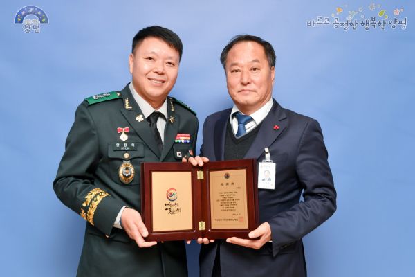 양평군은 경기도 31개 지자체 중 우수지자체로 됐으며 올해 지역방위핵심자원인 제55사단 양평대대를 체계적으로 지원하고 예비군 훈련 여건과 부대 운영 개선을 위해 작년 6,000만원에서 4,000만원 증액한 1억을 확보해, 주요 사업으로 예비군 안보교육관 나무의자를 극장식의자로 교체해 예비군 대원들에 쾌적한 훈련 환경을 제공해 훈련에 더욱 집중할 수 있도록 여건보장에 기여했다.
