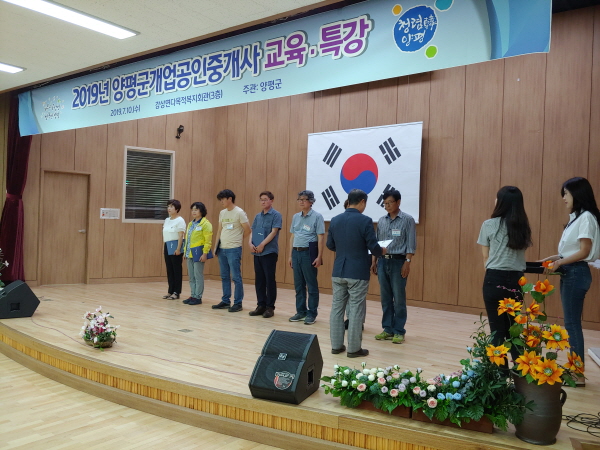 이번 교육은 부동산 분야 전문가인 장건 박사의‘부동산거래사고 예방을 위한 사례 중심’과 이주왕 교수의‘개업공인중개사 중개업 실무’특강 중심으로 진행됐고, 양평군 부동산 명예지도위원 7명에 대한 위촉장도 수여했다.