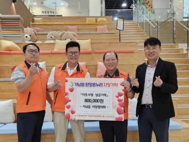 임영석 가남읍장은 “지역사회를 위한 이장협의회의 헌신과 따뜻한 나눔에 깊은 감사를 드린다”며, “기탁된 성금은 복지 사각지대에 놓인 이웃들을 위해 소중히 사용하겠다”라고 밝혔다.