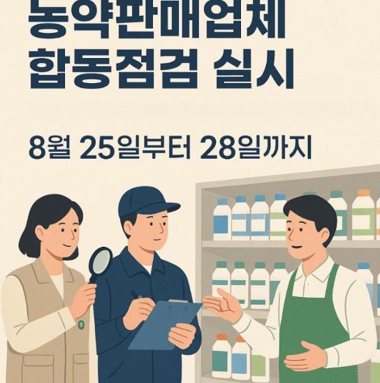 허수행 농업정책과장은 “농업 현장에서 사용되는 농약은 농업인의 안전과 소비자 신뢰에 직결되는 만큼, 이번 합동점검을 통해 건전한 유통 질서를 확립하고 안전한 농산물 생산 기반을 마련하겠다”라며 “앞으로도 농업인들이 믿고 사용할 수 있는 농업 환경을 조성하기 위해 최선을 다하겠다”라고 말했다.