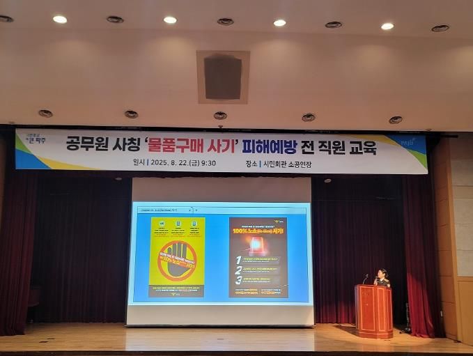 미디어라이프 중부신문 이종인 기자 | 파주시는 최근 전국적으로 확산되고 있는 ‘공무원 사칭 물품구매 사기’로부터 피해를 예방하고 직원들의 대응 역량을 강화하기 위해 지난 22일 시민회관 소공연장에서 전 직원을 대상으로 예방 교육을 실시했다고 밝혔다.