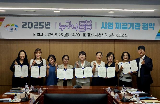 미디어라이프 중부신문 이종인 기자 | 이천시는 8월 25일 시청 5층 중회의실에서, '2025년 누구나 돌봄 신규 제공기관 협약식'을 개최하고, 지역사회 돌봄체계 강화를 위한 새로운 협력 기반을 마련했다.