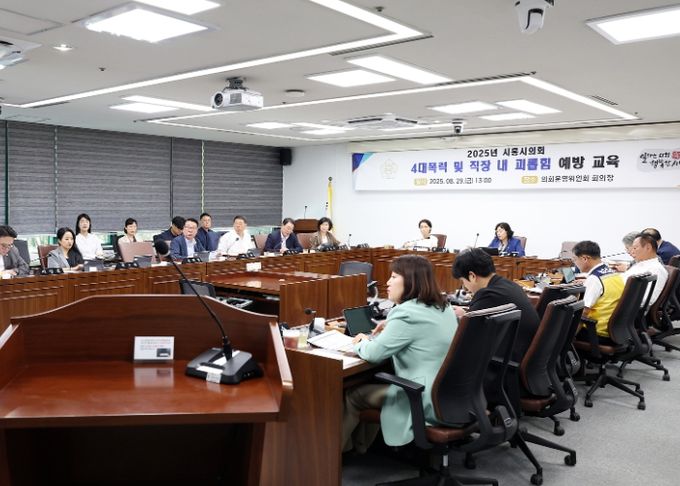 미디어라이프 중부신문 이종인 기자 | 경기 시흥시의회가 8월 29일 의회운영위원회 회의장에서 시의원 및 의회사무국 직원들을 대상으로 4대 폭력 예방 및 직장 내 괴롭힘 예방 교육을 진행했다.