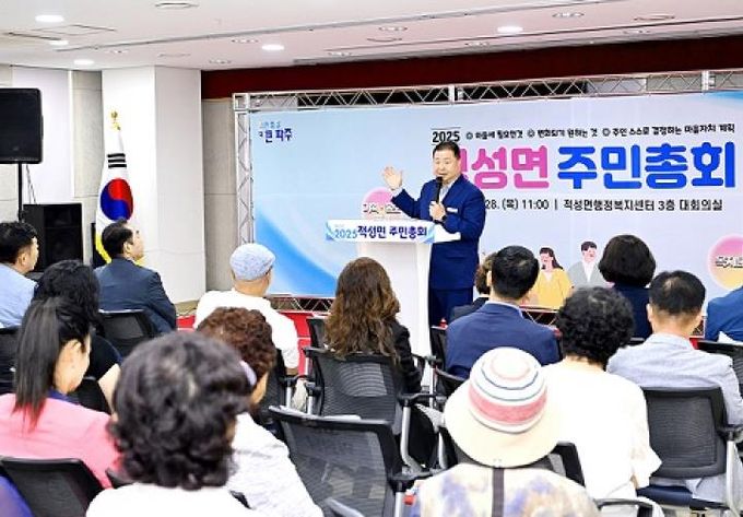 이날 주민총회는 김경일 파주시장, 시도의원을 비롯해 적성면 기관·단체장, 주민자치위원, 지역주민 등 100여 명이 참석했다.