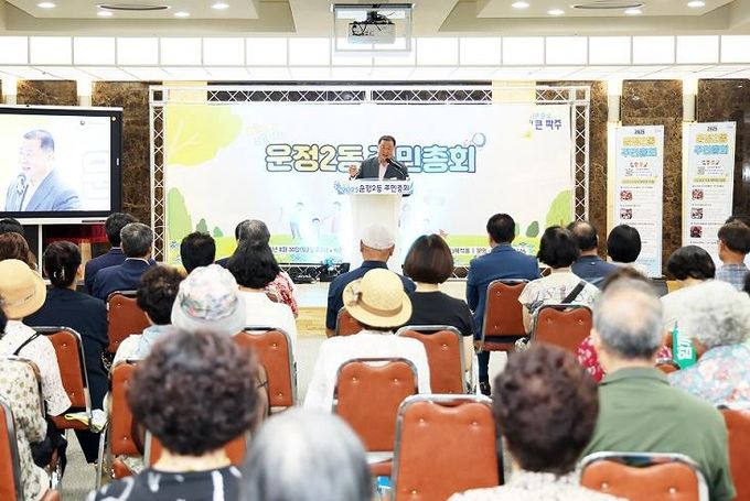 주민총회는 지역 주민들이 한자리에 모여 투표를 통해 내년도 사업을 결정하는 주민 공론의 장으로, 김경일 파주시장을 비롯해 운정2동 주민 등 200여 명이 참석했다.