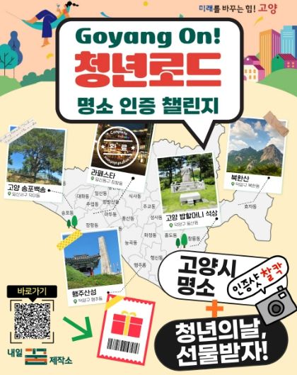 미디어라이프 중부신문 이종인 기자 | 고양특례시는 오는 9월 20일 개최되는‘2025 고양 청년의 날’기념행사를 앞두고, 청년들이 직접 참여하고 즐길 수 있는 사전 이벤트 ‘GOYANG ON! 청년로드 – 명소 인증 챌린지’를 운영한다고 밝혔다.