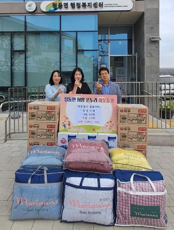 미디어라이프 중부신문 이종인 기자 | 점동면은 지난 9월 8일, 점동면 관내 업체인 진성기업 권지연 대표가 지역의 취약계층과 독거어르신을 위해 이불 10채와 라면 20박스를 기탁했다고 밝혔다.