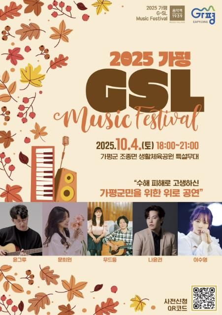 미디어라이프 중부신문 이종인 기자 | 가평군은 오는 10월 4일, 토요일 조종면 생활체육공원에서 ‘2025 가평 G-SL’ 뮤직페스티벌 공연을 개최한다. 올해 네 번째 G-SL 무대인 10월 뮤직페스티벌은 지난 여름 집중호우로 인한 피해로 지치고 고생한 군민들에게 위로와 희망의 메시지를 전하기 위해 조종생활체육공원 특설무대에서 열린다.