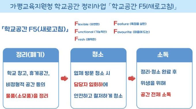 미디어라이프 중부신문 이종인 기자 | 경기도가평교육지원청은 교육청은 2025년 하반기 부터 학교공간 정리사업인 ‘학교공간 F5(새로고침)’을 시범 추진한다.
